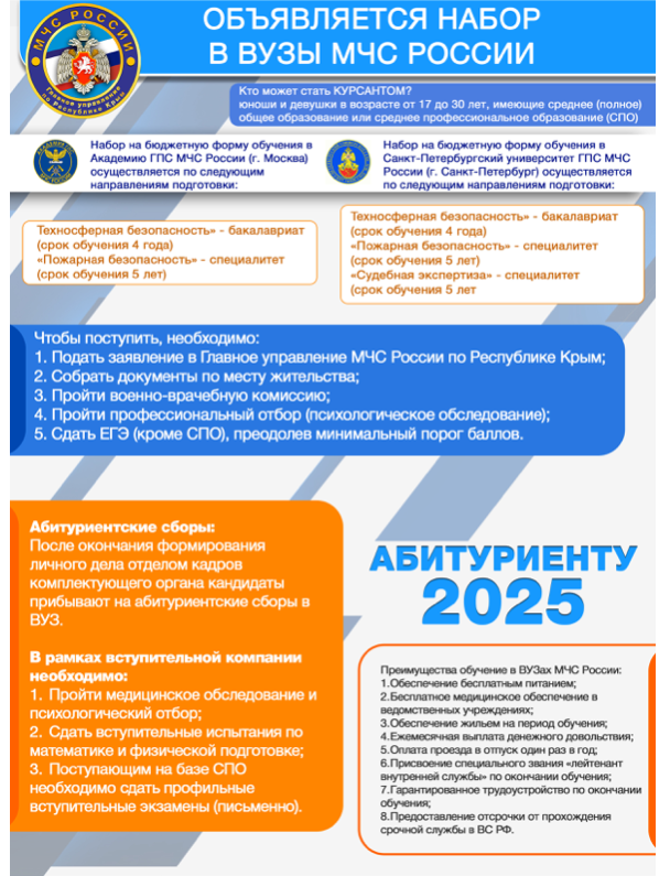 Акция. Министерство образования, науки и молодежи Республики Крым (далее – Министерство) информирует, что с 24 марта по 4 апреля 2025 года на территории Республики Крым проводится первый этап Общероссийской антинаркотической акции «Сообщи, где торгуют смертью». Целью акции является привлечение общественности к участию в противодействии незаконному обороту наркотиков и сообщение информации на телефон доверия для проведения проверки согласно действующему законодательству Российской Федерации. Министерство просит принять участие в указанной Акции и разместить на сайтах образовательных организаций информацию о работе телефонов горячей линии МВД по Республике Крым (тел.(0652) 734-613 или 102).